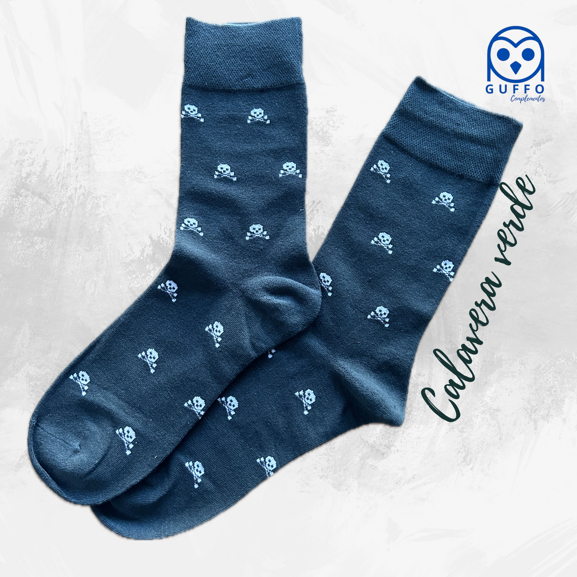 Calcetines de color verde con un dibujo seriado de Calavera.