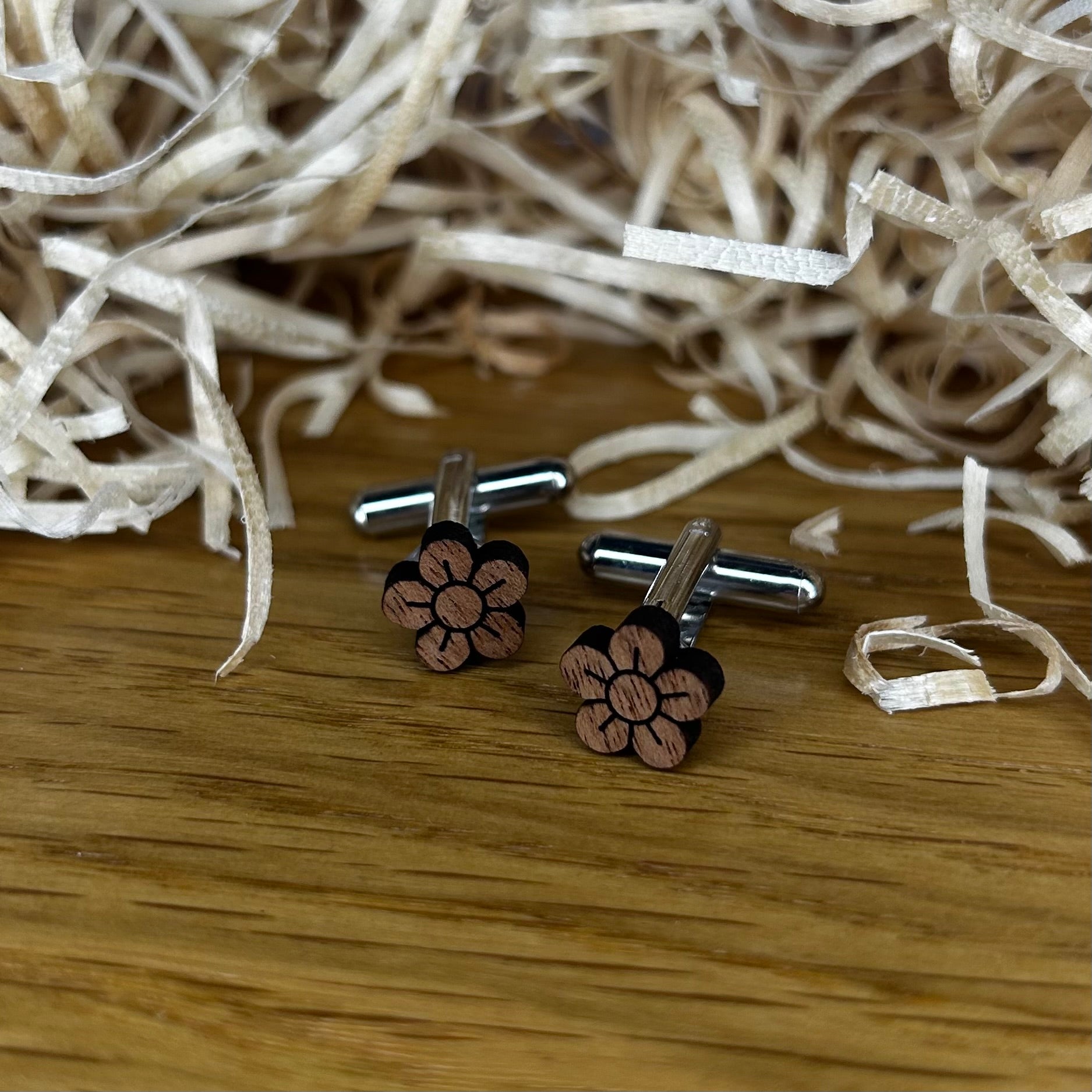 Gemelo de madera cortada con dispositivo láser. Margarita.