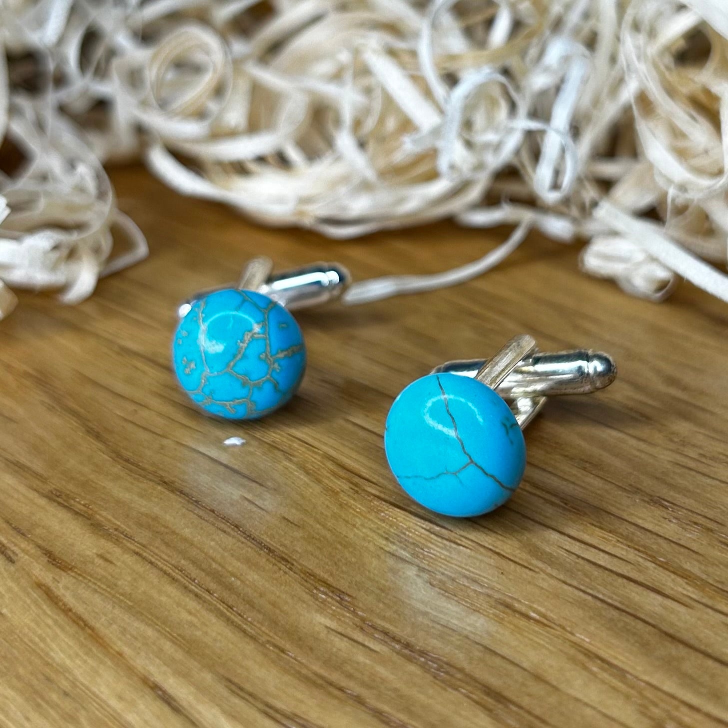 Gemelo con piedra natural color celeste