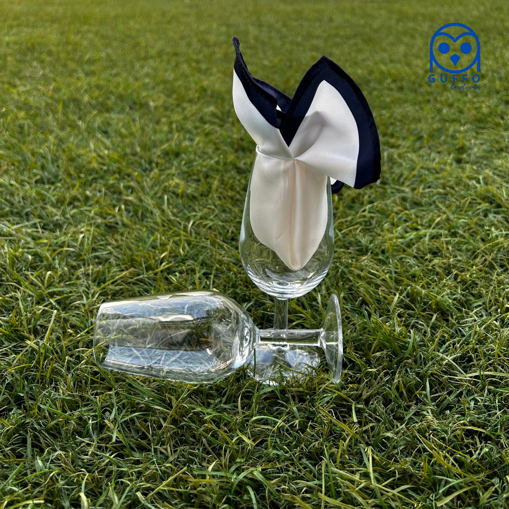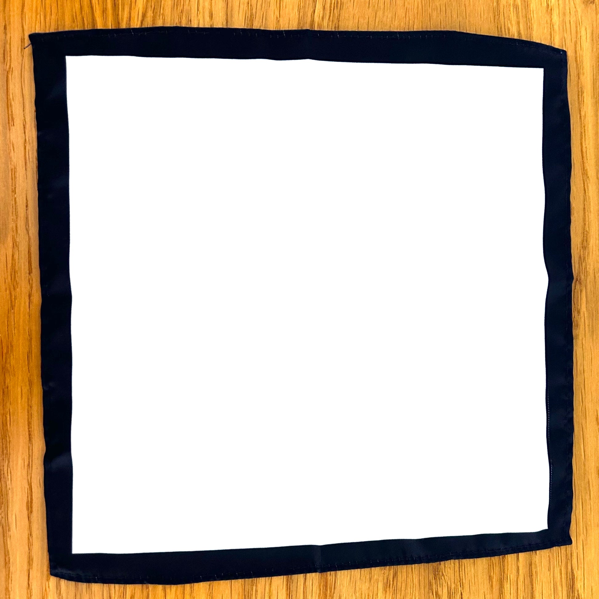 PAÑUELO BLANCO CON RIBETE ANCHO AZUL MARINO
