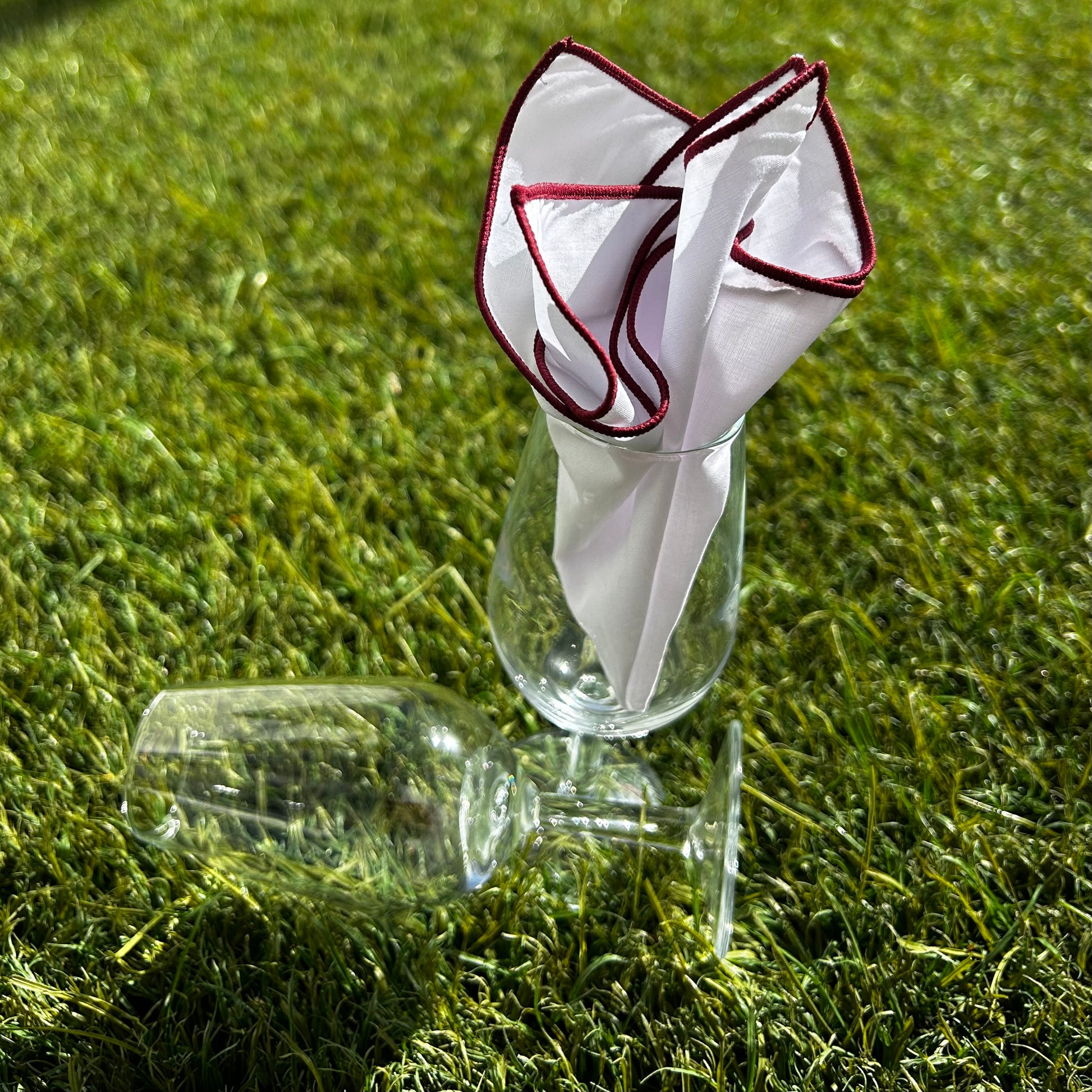 Estampado: Blanco liso, con ribete cosido en hilo burdeos.
