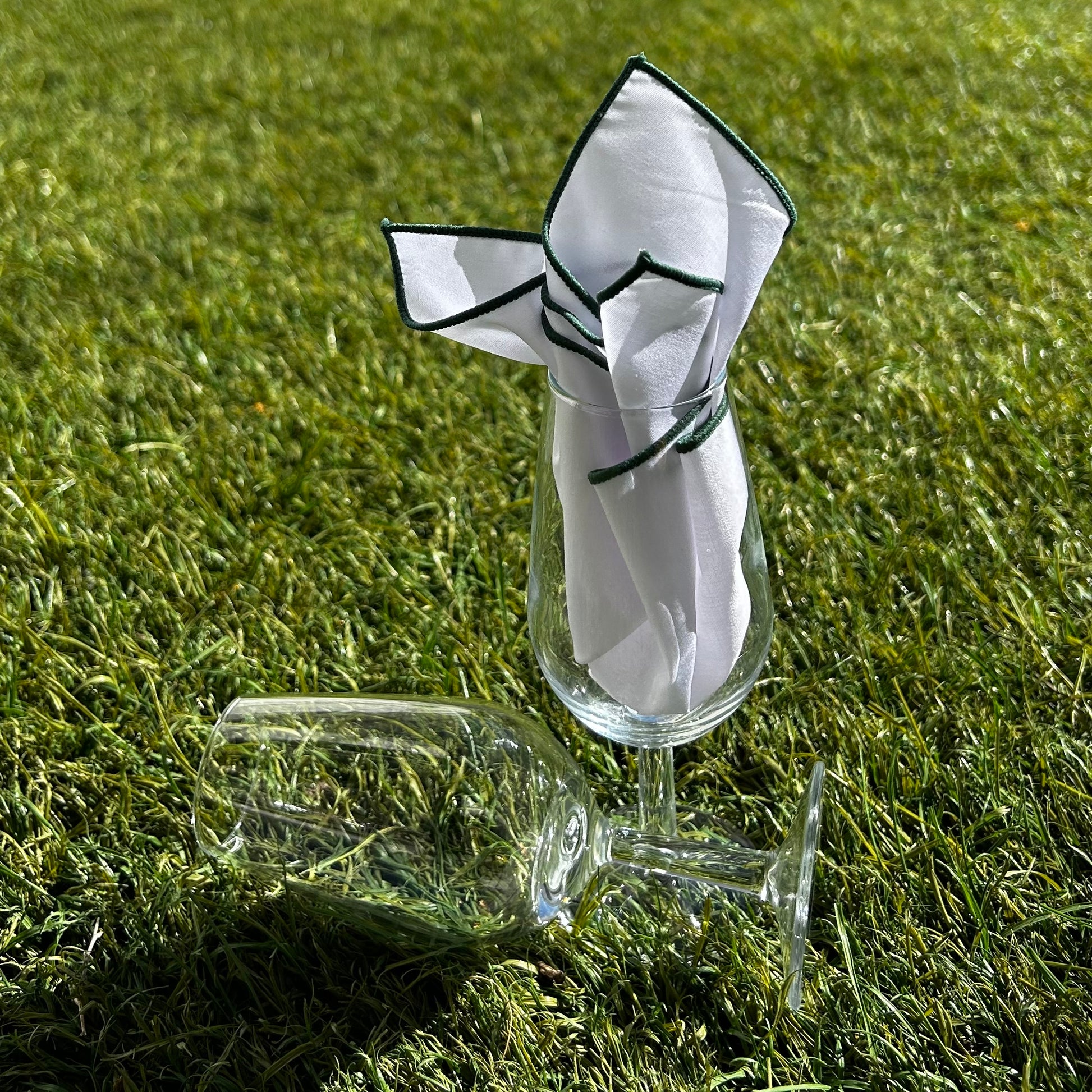 Estampado: Blanco liso, con ribete cosido en hilo verde.
