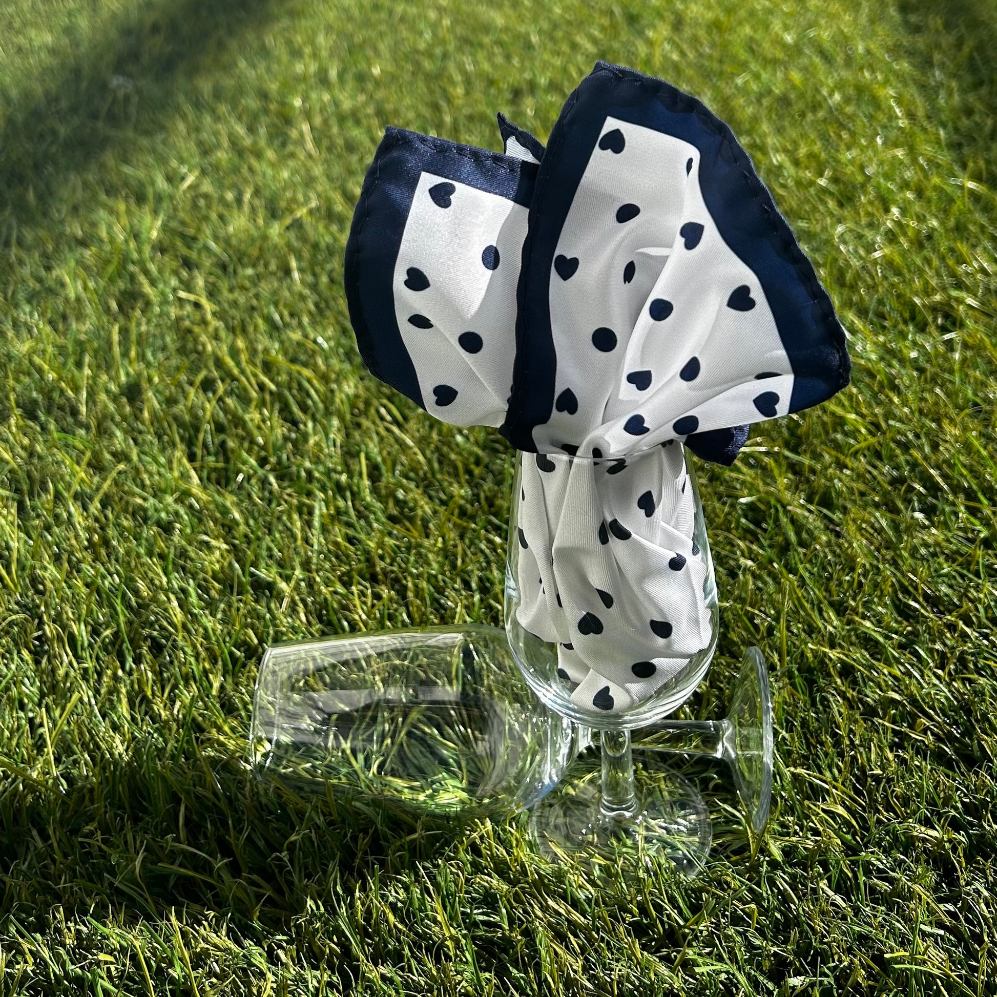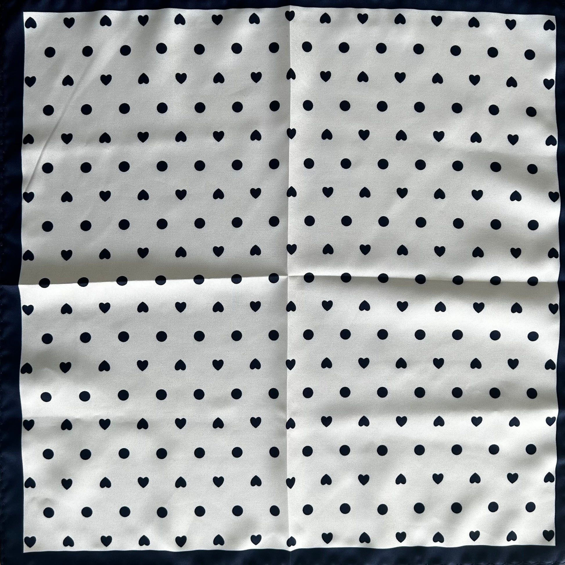 Estampado: Bonito estampado con serie de topos y corazones. Base blanco y estampados azul marino.