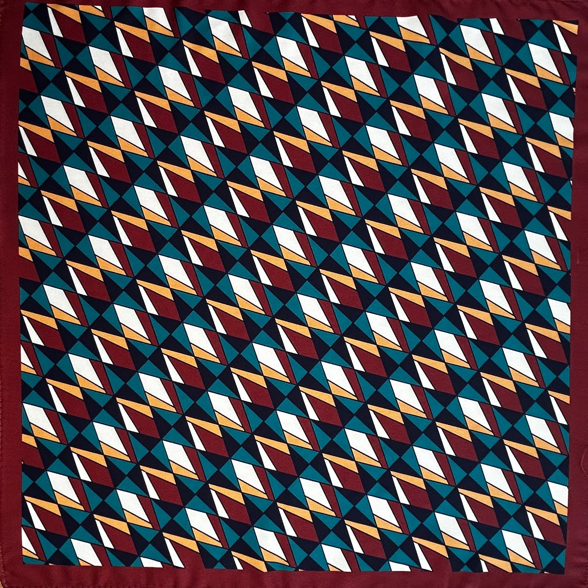 Estampado: Bonito estampado con elementos geométricos de diferentes colores. Enmarcado tono caldera.