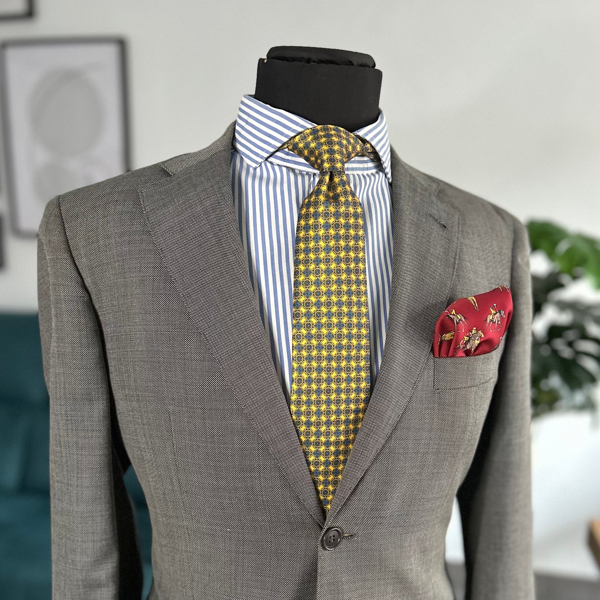 Estampado: Bonito estampado con jugadores de polo a caballo. Base burdeos y con enmarcado azul marino