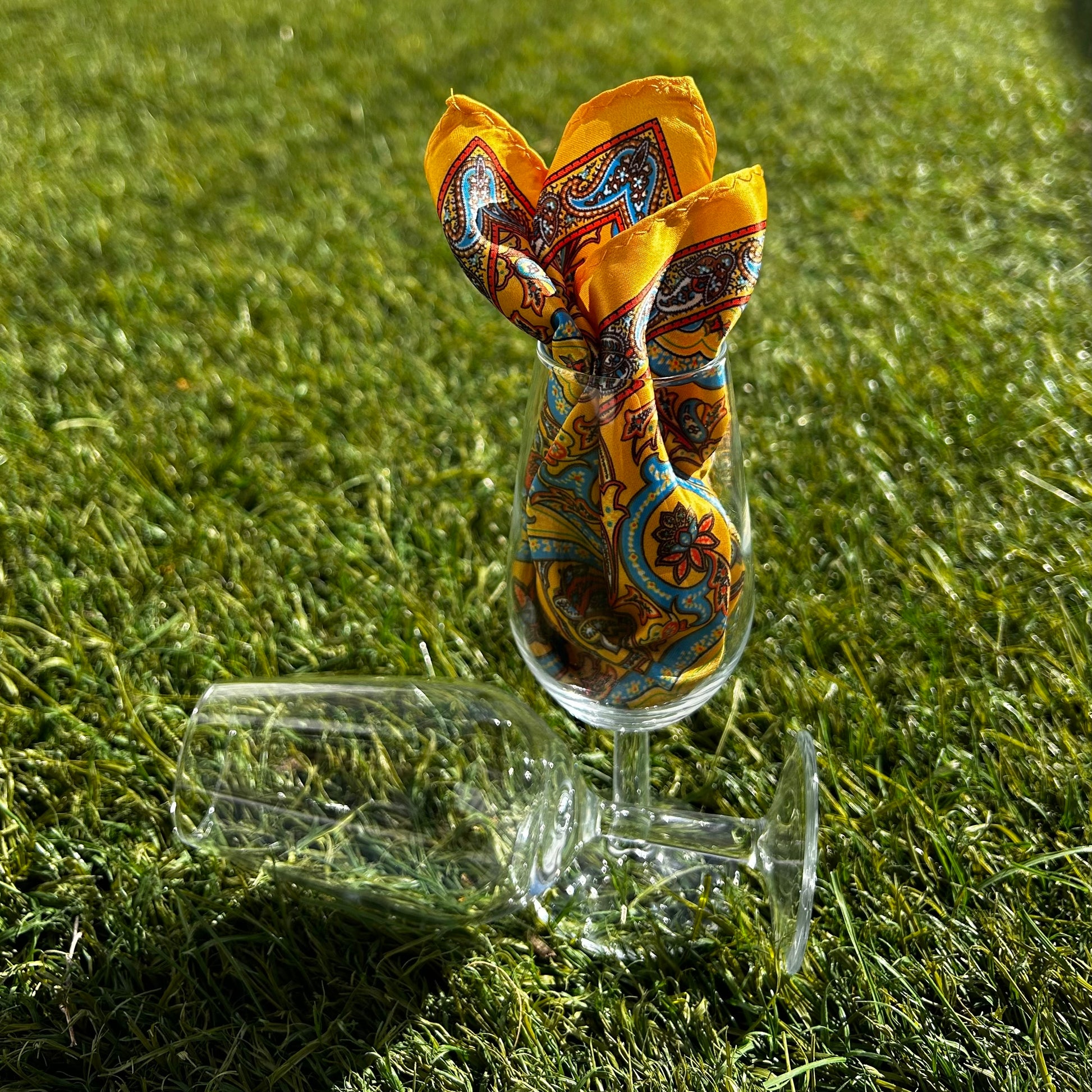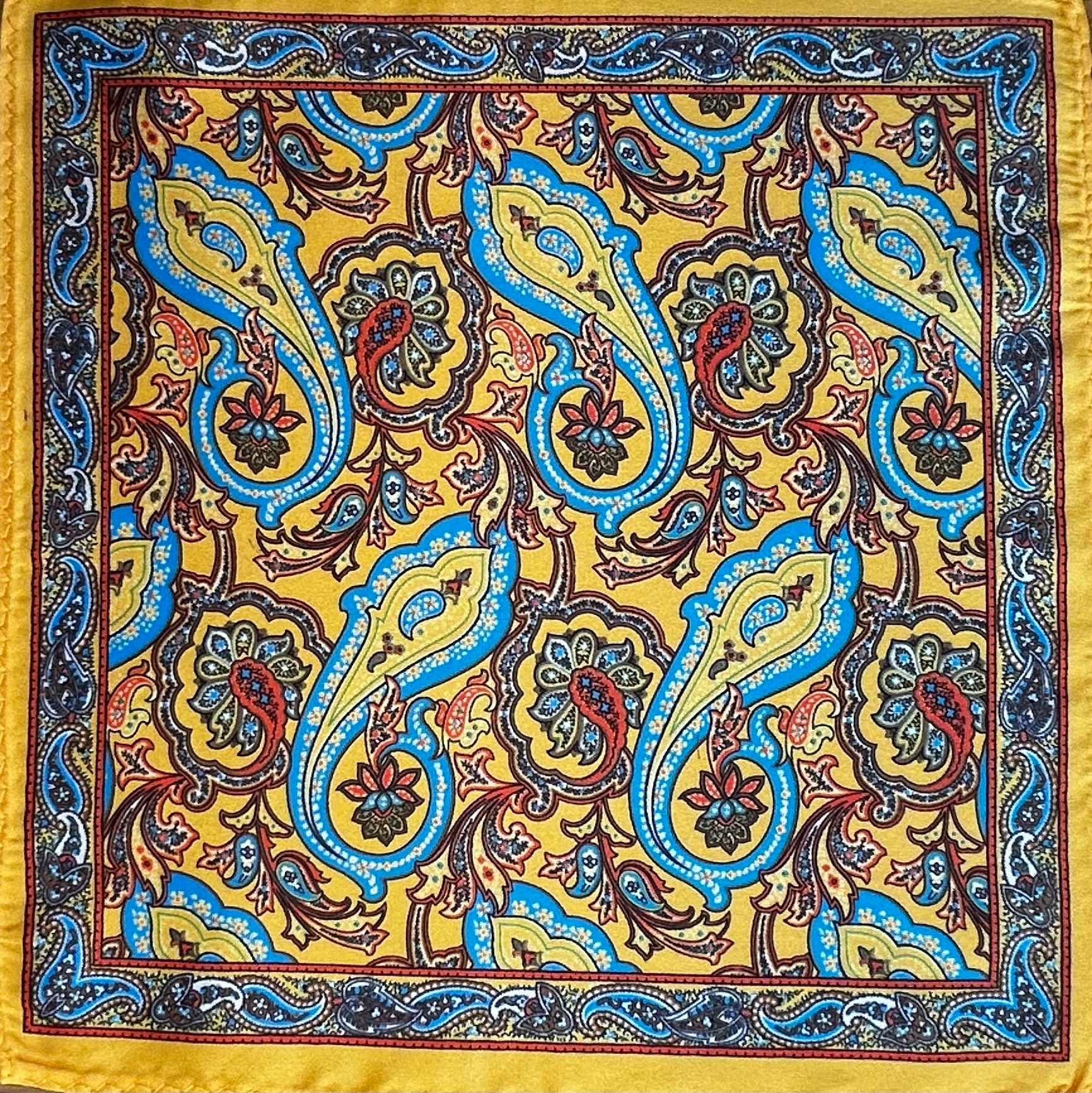 Estampado: Bonito estampado cachemir sobre fondo amarillo.