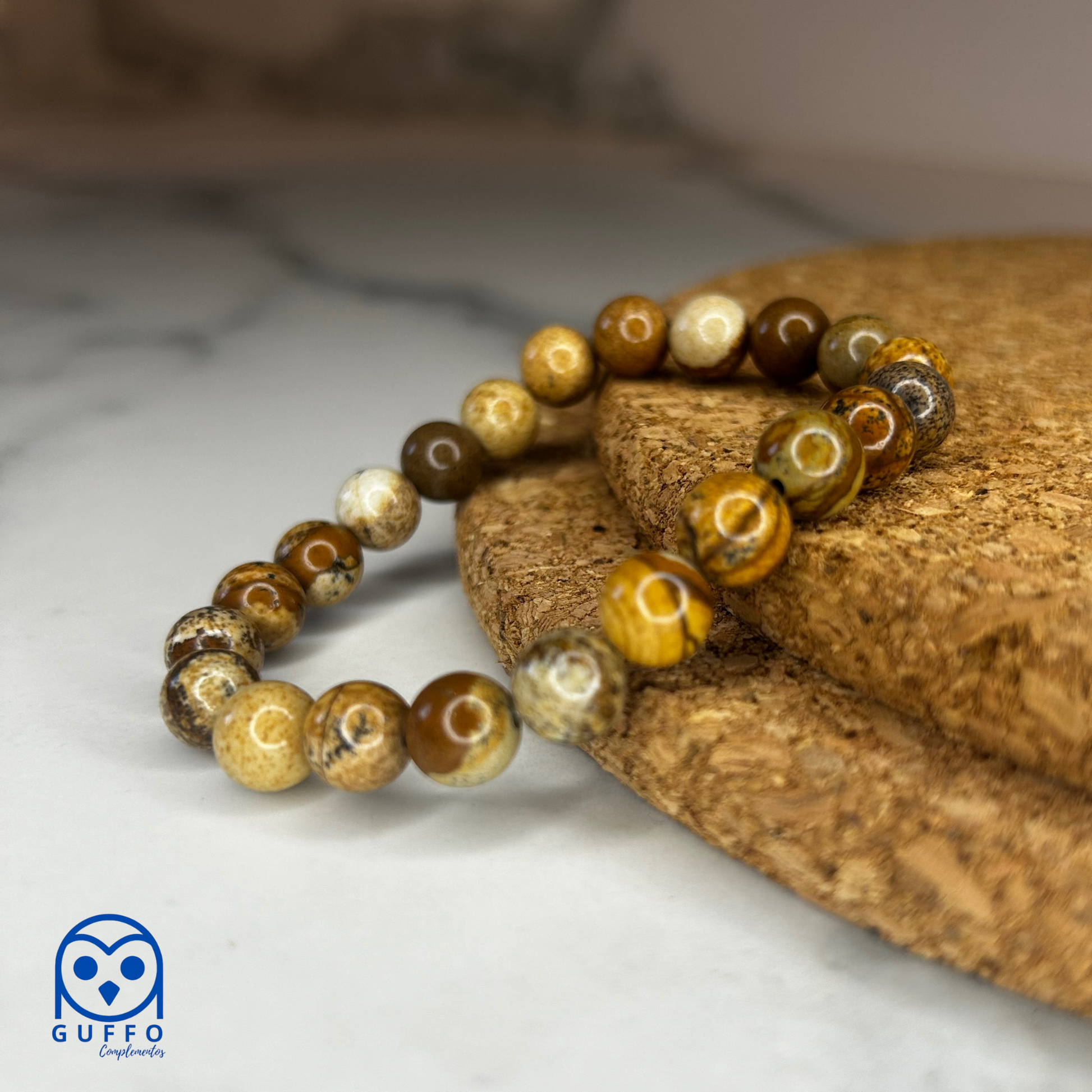Pulsera elastica formada por cuentas esféricas de piedra Ámbar