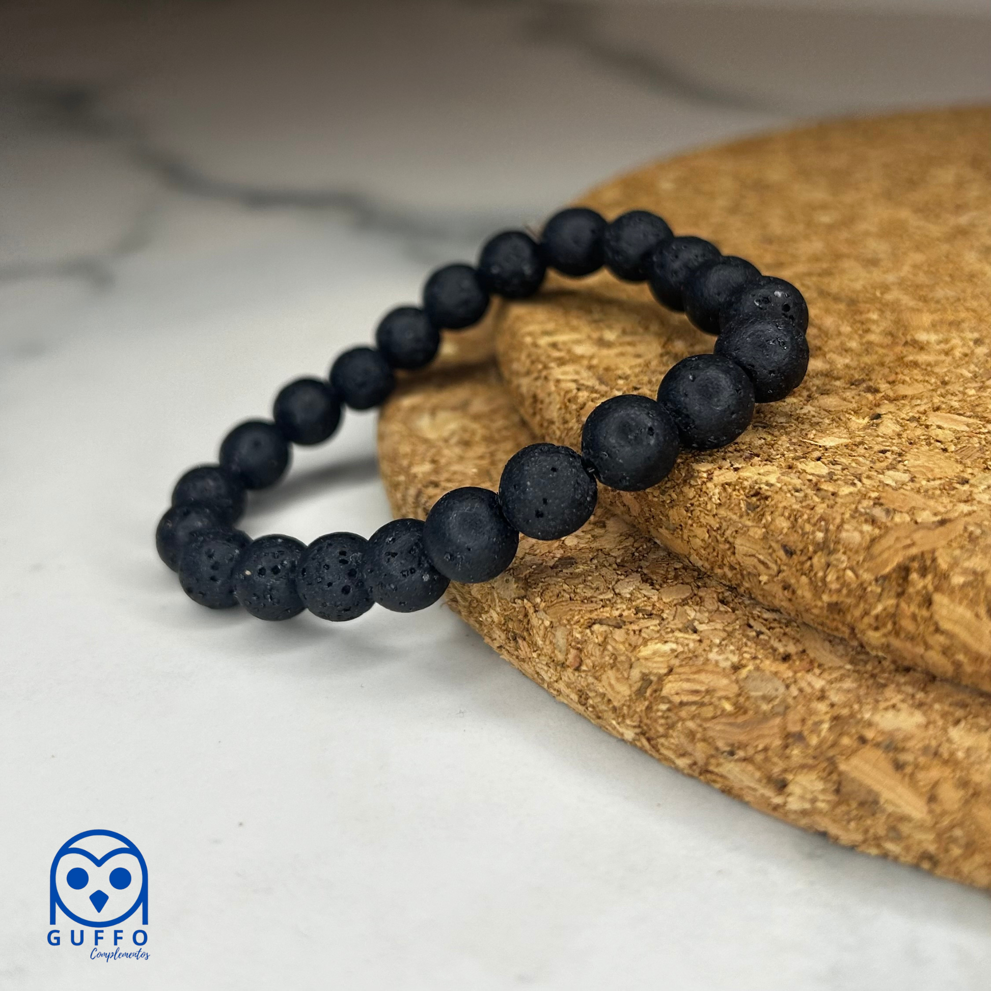 Pulsera elástica formada por cuentas esféricas de piedra volcánica.
