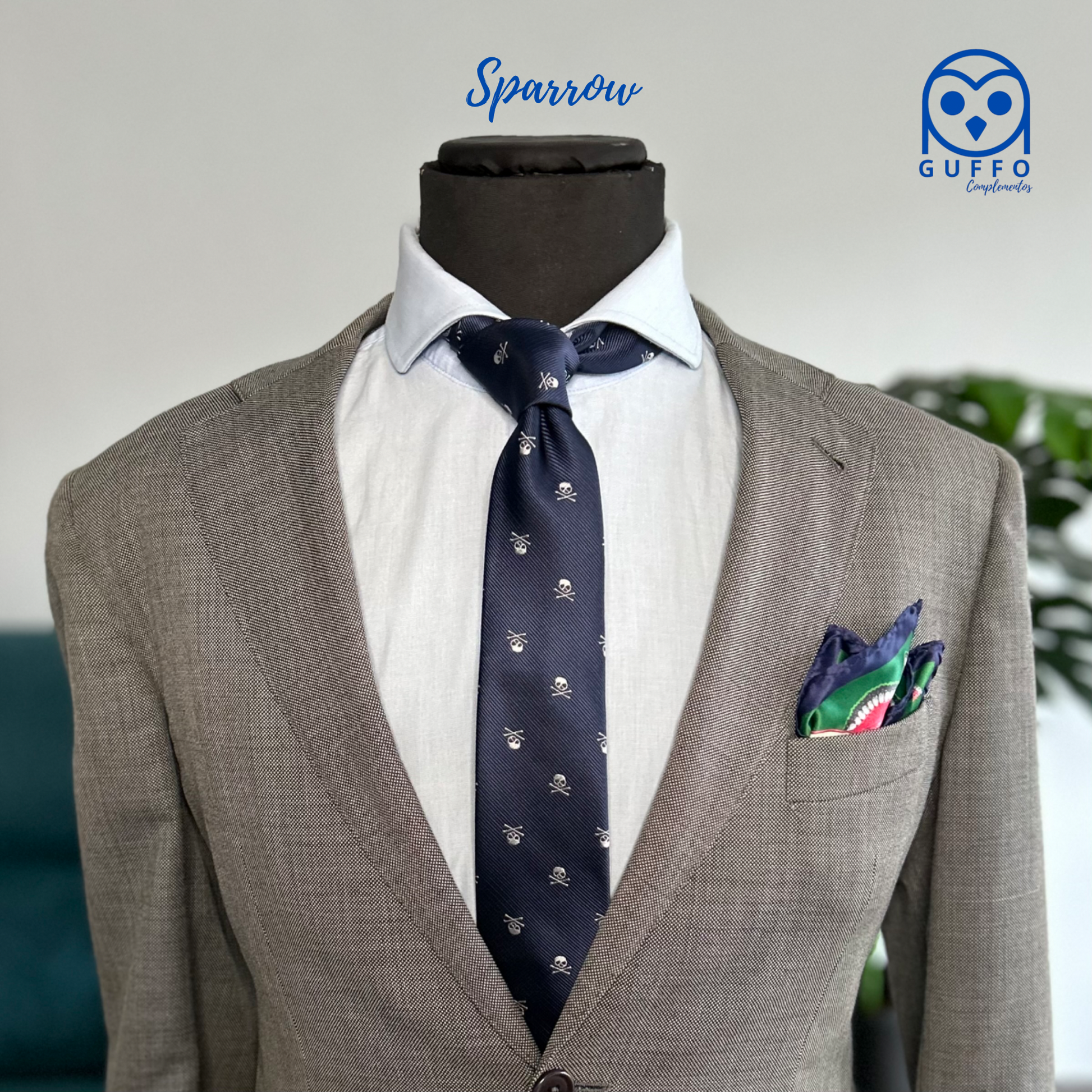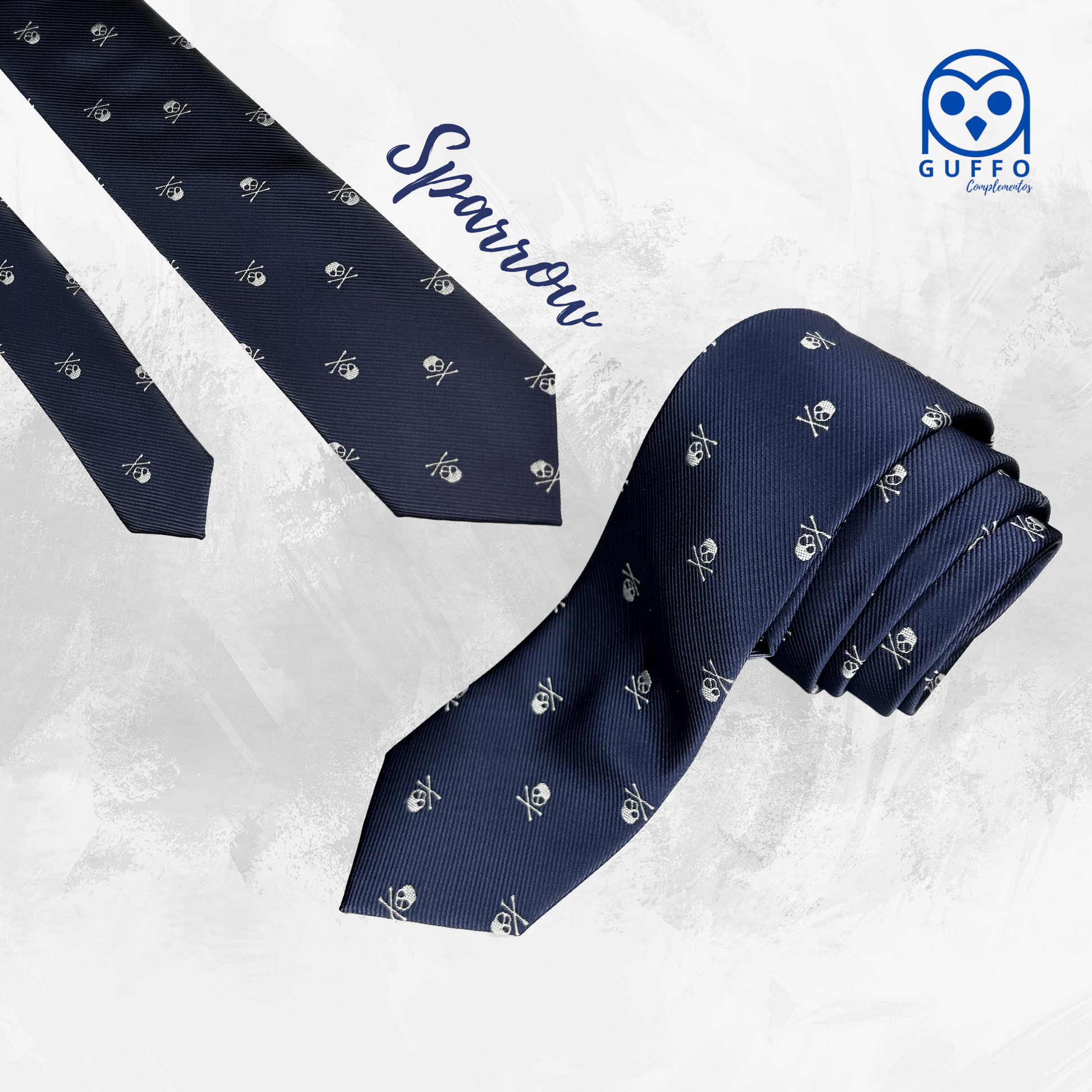 Estampado: Base azul marina con seriado de calaveras.